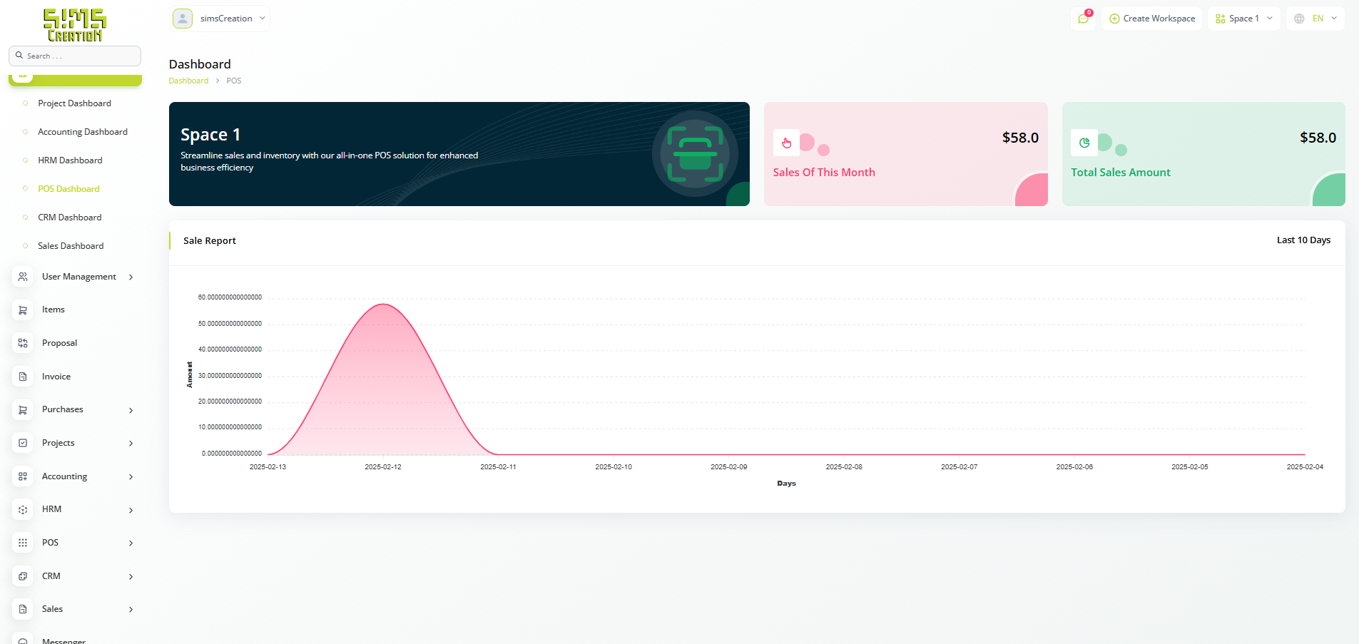 Welcome to the POS Module in SimsCreation SaaS, your ultimate solution for streamlined sales management. Our platform offers a user-friendly dashboard where you can easily navigate through your sales activities. At the heart of the dashboard is a dynamic chart representing your sales reports, providing valuable insights into your business is performance. Whether you are a small retail store or a bustling restaurant, our POS Module empowers you to efficiently manage your sales process from start to finish.